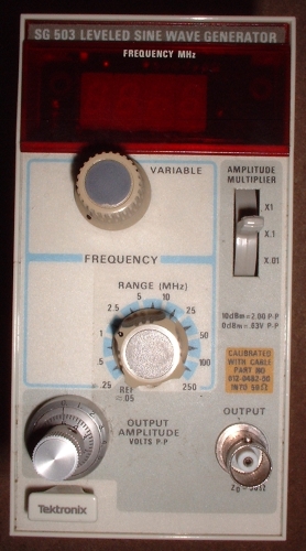 Equipment for calibrating and adjusting Change date = 20070204 21:18:20 Art.Nr. 90 Type SG503 Brand - Merk Tektronix Article - Artikel Leveled Sine Wave Generator 250 MHz Category Calibration Operating Manual X Production Year 1987