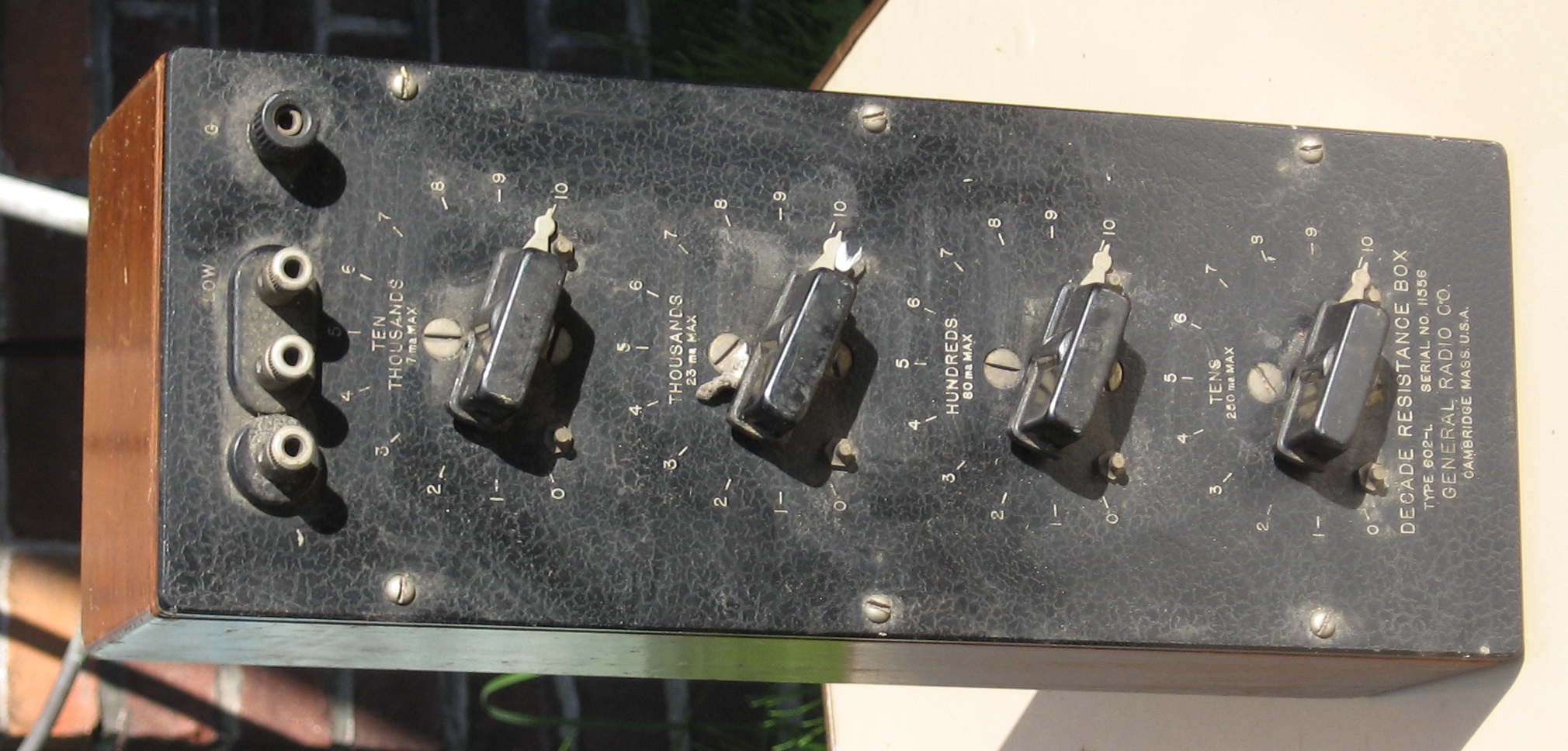 Electronics for sale Change date = 20070720 21:58:54 Art.Nr. 328 Type 602-L Brand - Merk General Radio Article - Artikel Decade Resistance Box Price - Prijs 70,00 Euro Stock - Voorraad 1 Condition - Conditie Used Title General Radio 602-L Decade Resistance Box [328] -------------------------------------------------------------------------------- Weerstandsbank 4 decaden van 10 Ohm t/m 10 k Ohm Maximale weerstand 100 kOhm