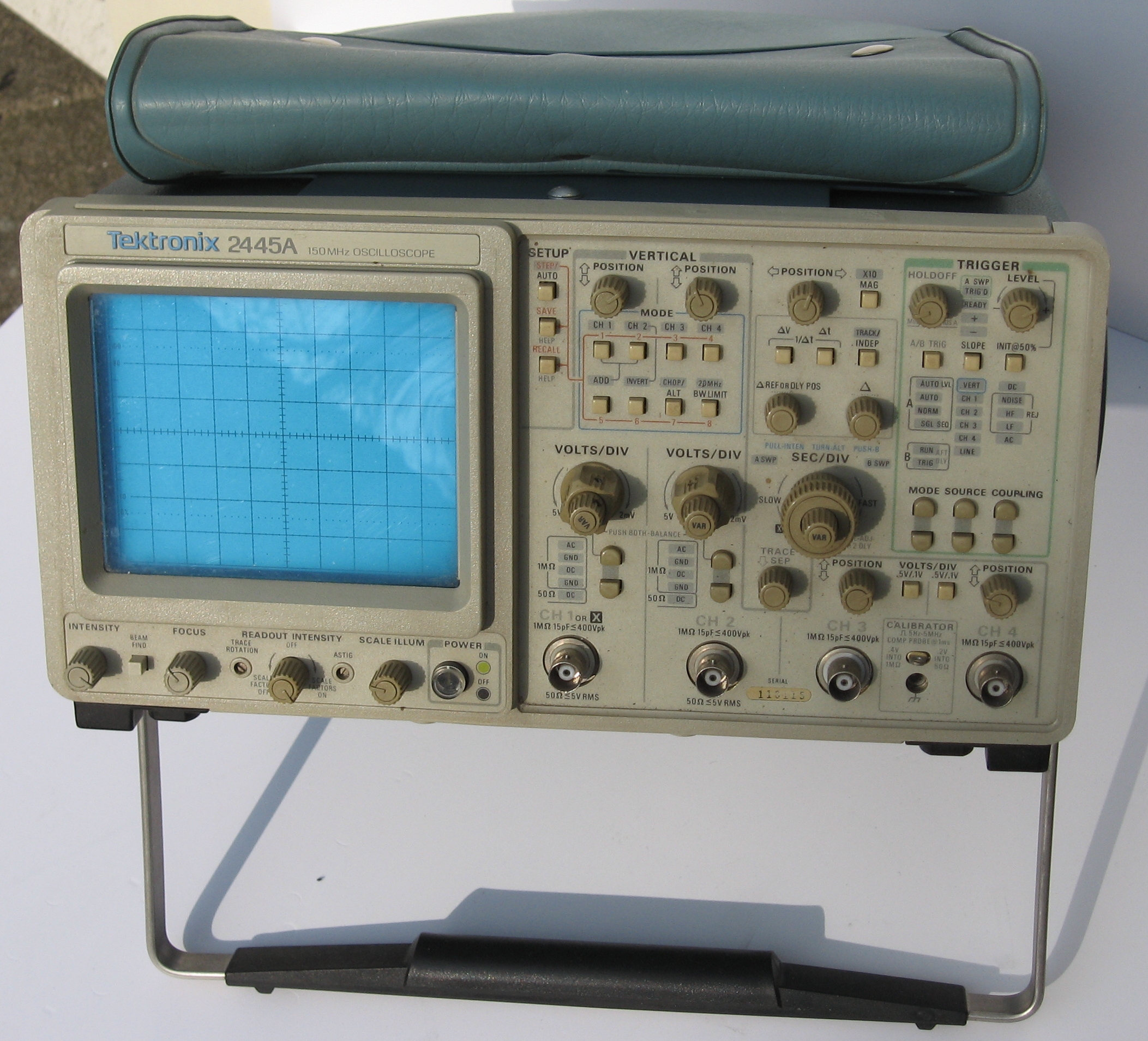 Electronics for sale Change date = 20090711 23:29:54 Art.Nr. 476 Type 2445A Brand - Merk Tektronix Article - Artikel Osciloscope 4 channel 150 MHz Price - Prijs 300,00 Euro Condition - Conditie Tested Title Tektronix 2445A Osciloscope 4 channel 150 MHz [476]