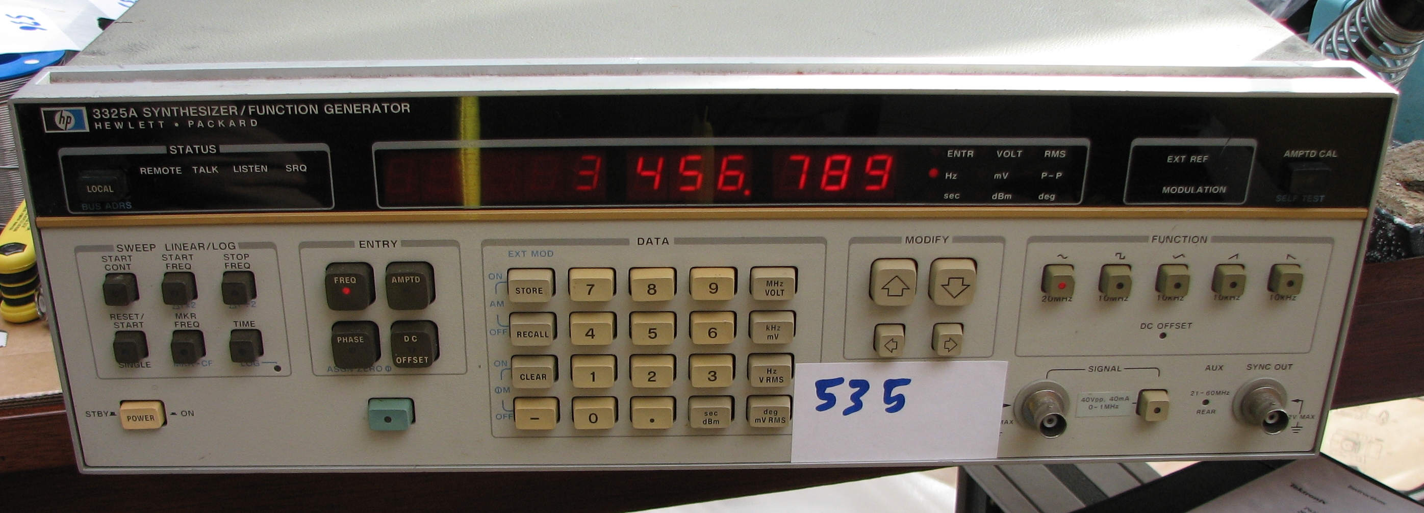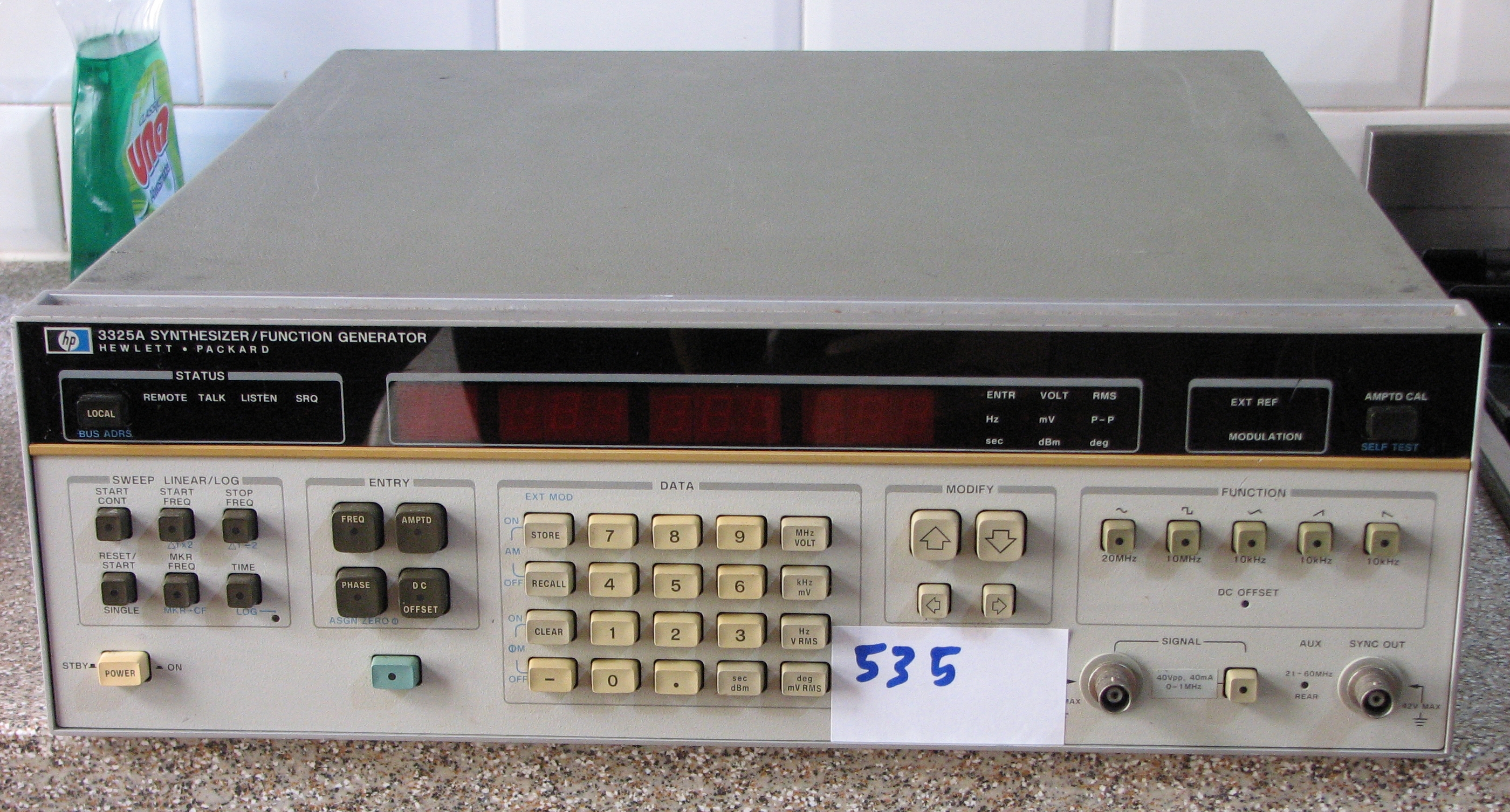 Electronics for sale Change date = 20130406 19:56:28 Art.Nr. 535 Type 3325A Brand - Merk Hewlett Packard Article - Artikel Functie generator 11 digits 21 MHz Opt 2 Price - Prijs 350,00 Euro Stock - Voorraad 2 Condition - Conditie Refurbished Title HP 3325A Functie generator 11 digits 21 MHz Opt 2 [535]