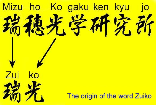 The word Zuiko (pronounced as Z(u)weeko) has a dual meaning; it was invented as an abbreviation of the name of Olympus' optical plant: Mizuho Kogaku-kenkyujo, written in Chinese, but it is also an existing ancient Chinese word that means "light showing a sign of auspicious events". A free translation could be 'golden light'.