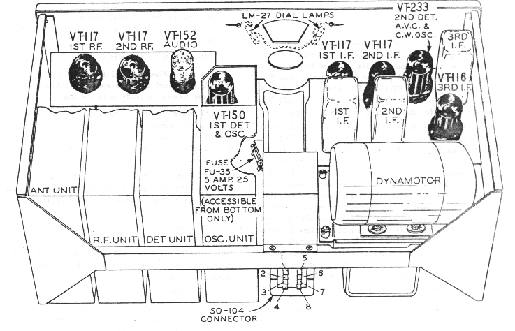 Figure 2 – Radio receiver BC-348-J, Tube Positions