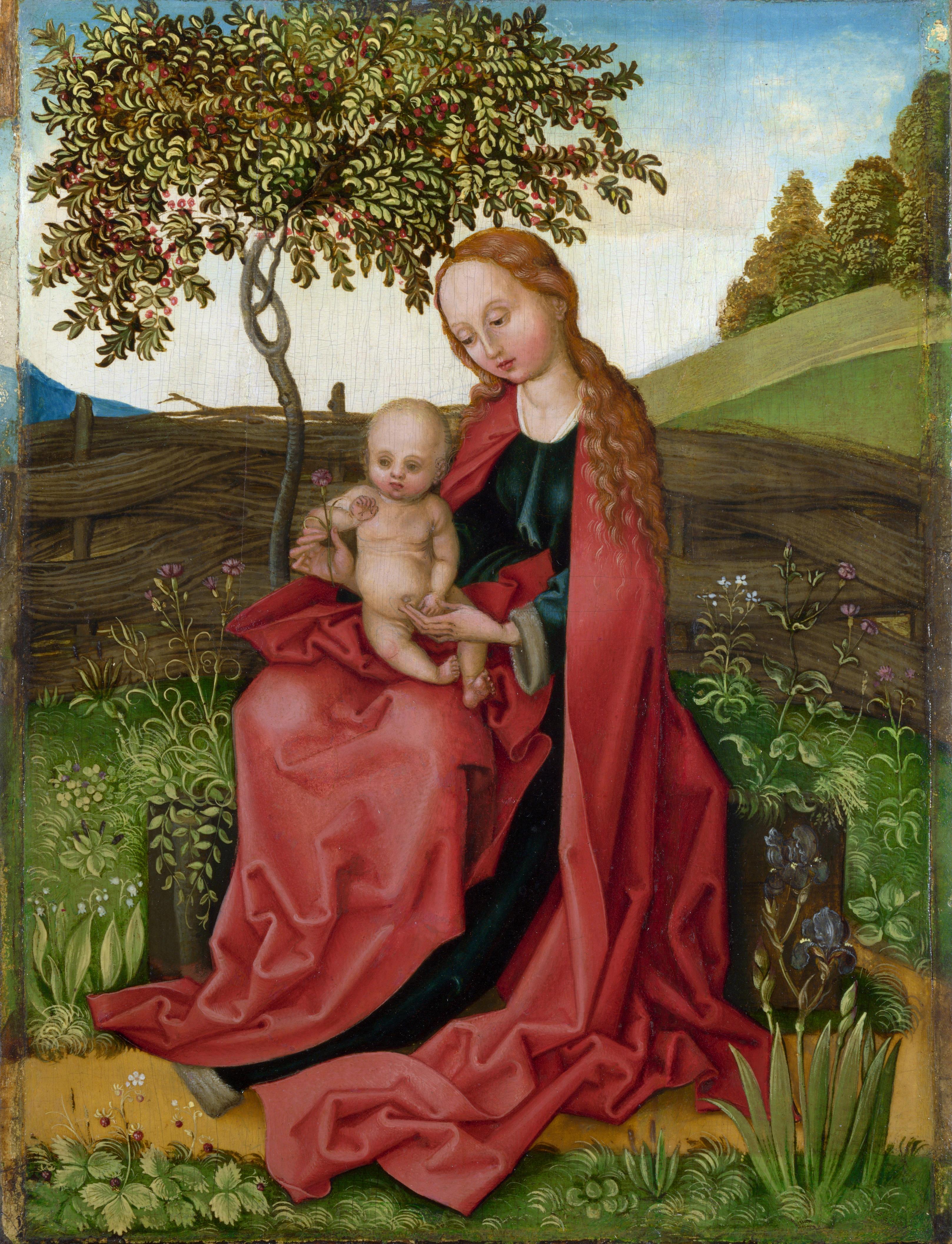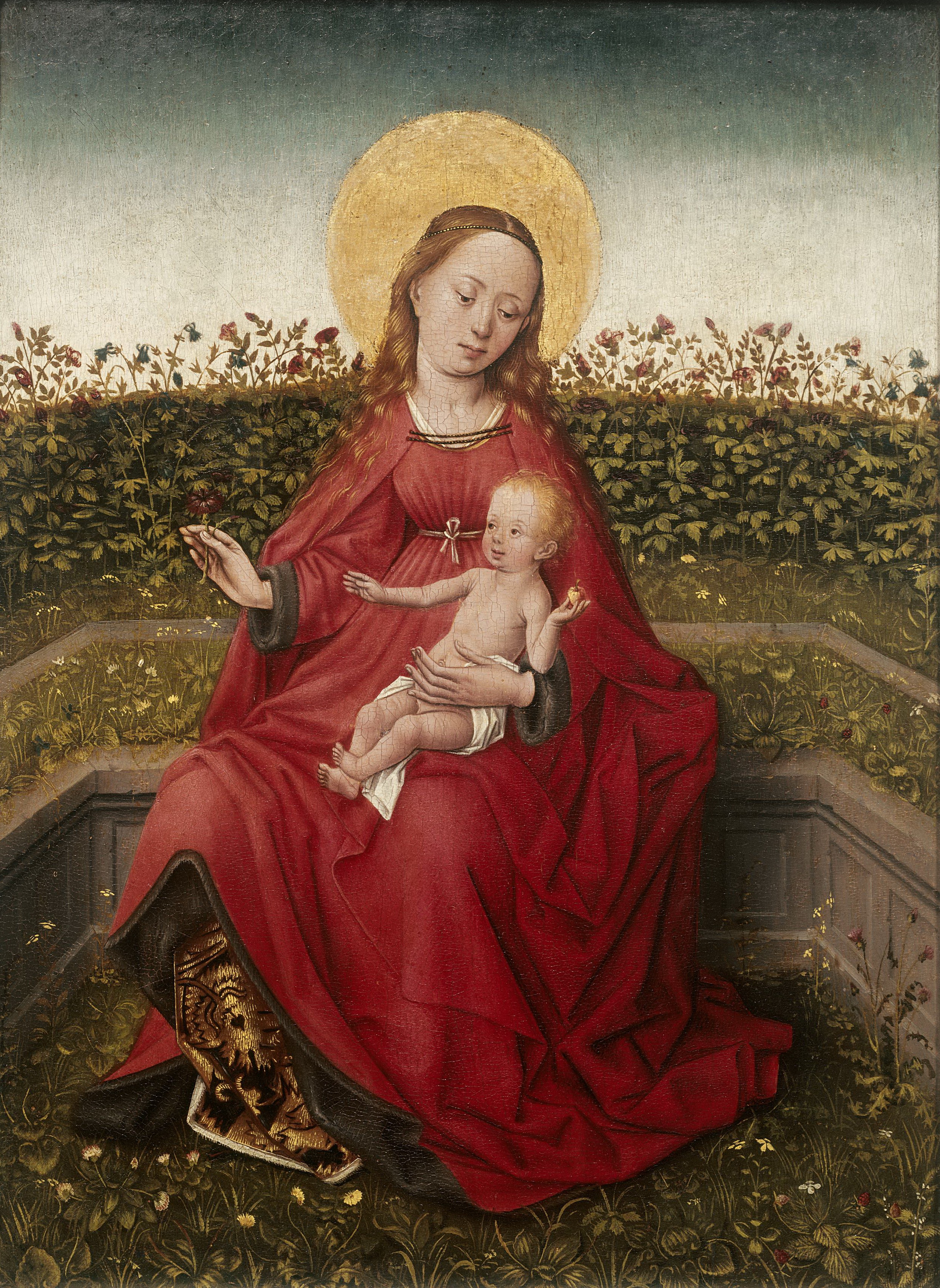 Martin Schongauer style. Madonna and Child in a Garden (London, National galery).jpg
