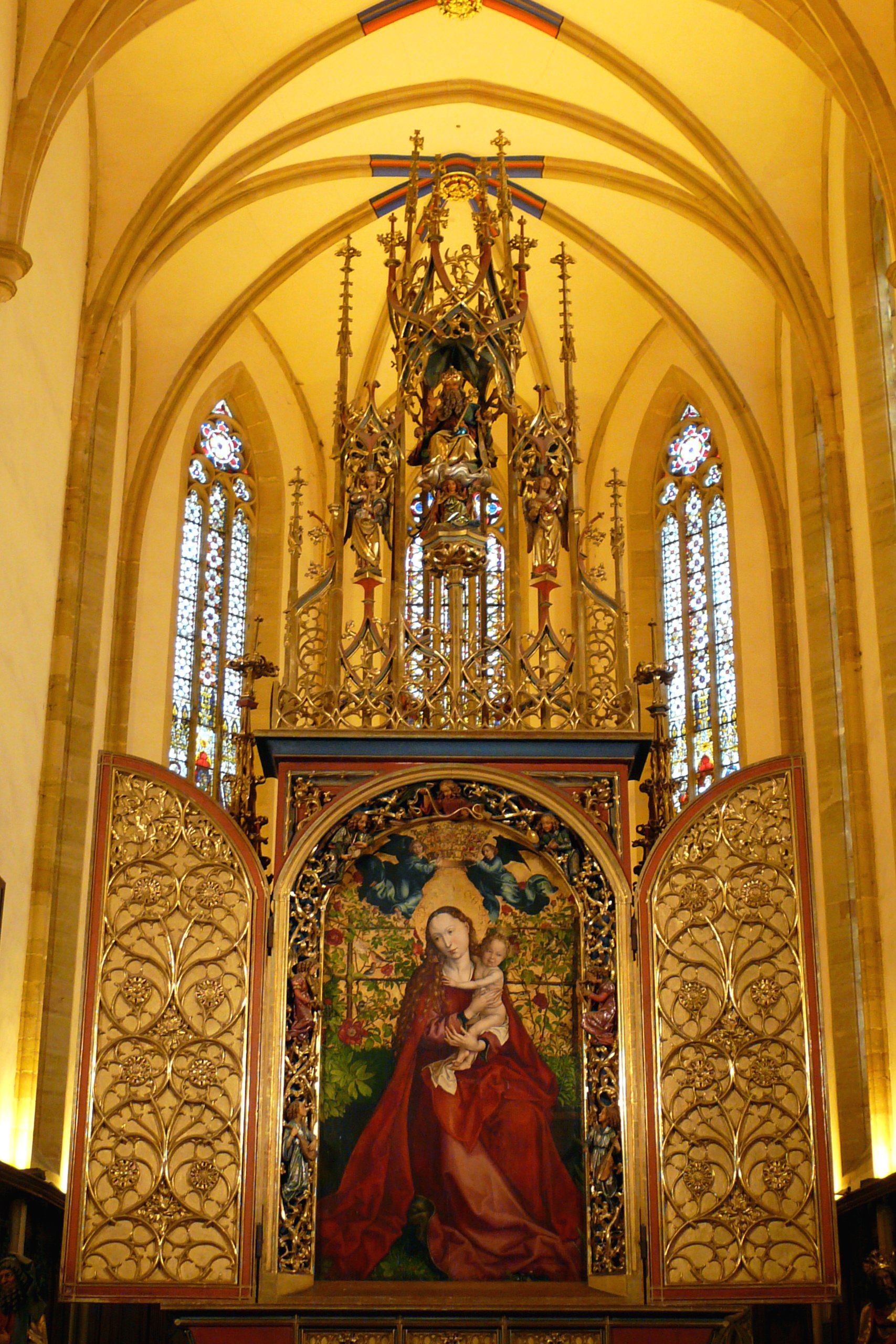 Madonna in an arbor of roses (photo of the interior of St. Martin in Colmar).jpg