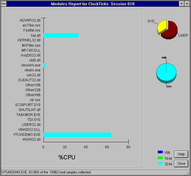 VTune's Modules Report showing system-wide view of software activity.