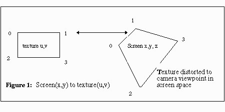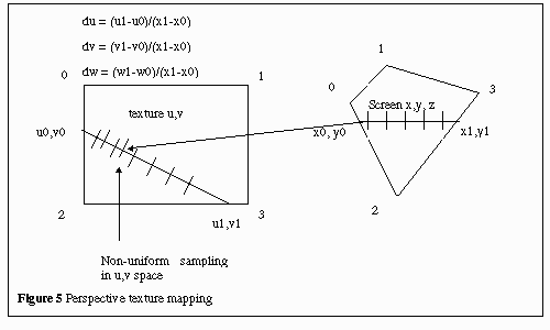 to eliminate distortions in mapped images. For a scanline, the first u,v