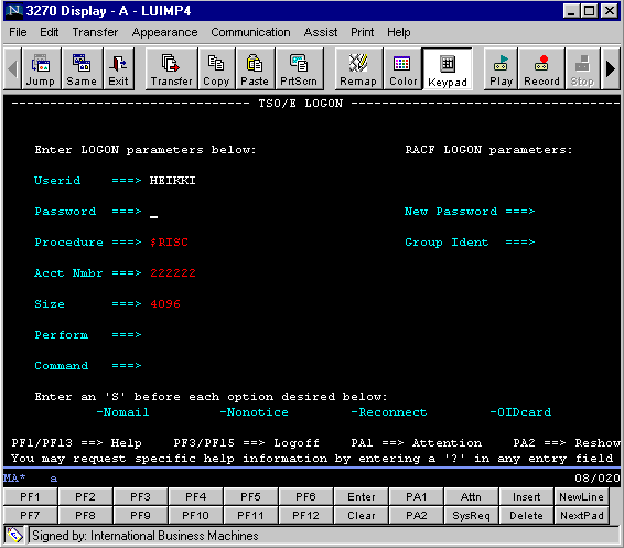 TN3270E (checked to enable) IP address : 172.128.1.2 Automatic logoff ( checked to enable) |