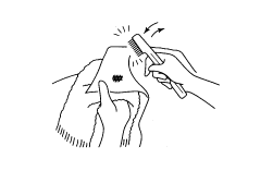 Place a towel behind the part where there is heavy soiling or stubborn dirt(for example on collar and sleeves).Using plain water, wet the area surrounding the soiled spot, then apply liquid neutral detergent (for clothing) to the spot, and lightly tap the dirty spot using a soft brush.(Do not scrub.)