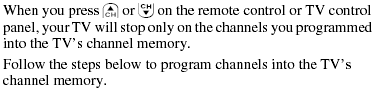 Programming Channel into the TV's Channel Memory