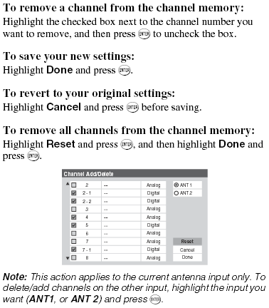 Manually Adding and Deleting Channel in the Channel Memory
