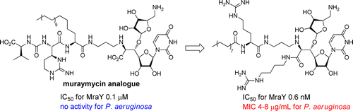 Expansion of Antibacterial Spectrum of Muraymycins toward Pseudomonas aeruginosa Yusuke Takeoka, Tetsuya Tanino, Mitsuaki Sekiguchi, Shuji Yonezawa, Masahiro Sakagami, Fumiyo Takahashi, Hiroko Togame, Yoshikazu Tanaka, Hiroshi Takemoto, Satoshi Ichikawa, and Akira Matsuda 556-560