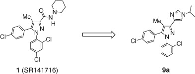 Bioisosteric replacement of the hydrazide pharmacophore of the cannabinoid-1 receptor antagonist SR141716A. Part I: Potent, orally-active 1,4-disubstituted imidazoles Robert L. Dow, John R. Hadcock, Dennis O. Scott, Steven R. Schneider, Ernest S. Paight, Philip A. Iredale, Philip A. Carpino, David A. Griffith, Marlys Hammond, Paul DaSilva-Jardine 5351-5354