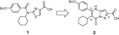 Discovery of 4H-pyrazolo[1,5-a]pyrimidin-7-ones as potent inhibitors of hepatitis C virus polymerase Yongqi Deng, Gerald W. Shipps Jr., Tong Wang, Janeta Popovici-Muller, Kristin E. Rosner, M. Arshad Siddiqui, Jose Duca, Alan B. Cooper, Michael Cable 5363-5367