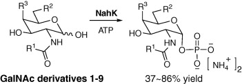 Substrate specificity of N-acetylhexosamine kinase towards N-acetylgalactosamine derivatives Li Cai, Wanyi Guan, Wenjun Wang, Wei Zhao, Motomitsu Kitaoka, Jie Shen, Crystal O’Neil, Peng George Wang 5433-5435