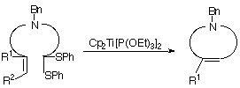 Preparation of Cyclic Amines by the Titanocene(II)-promoted Cyclization of Thioacetals Having a Carbon-Carbon Double Bond