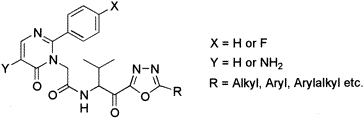 Synthesis, Structure-Activity Relationships, and Pharmacokinetic Profiles of Nonpeptidic Difluoromethylene Ketones as Novel Inhibitors of Human Chymase Fumihiko Akahoshi, Atsuyuki Ashimori, Hiroshi Sakashita, Takuya Yoshimura, Masahiro Eda, Teruaki Imada, Masahide Nakajima, Naoko Mitsutomi, Shigeki Kuwahara, Tatsuyuki Ohtsuka, Chikara Fukaya, Mizuo Miyazaki, and Norifumi Nakamura [Full Article - PDF]