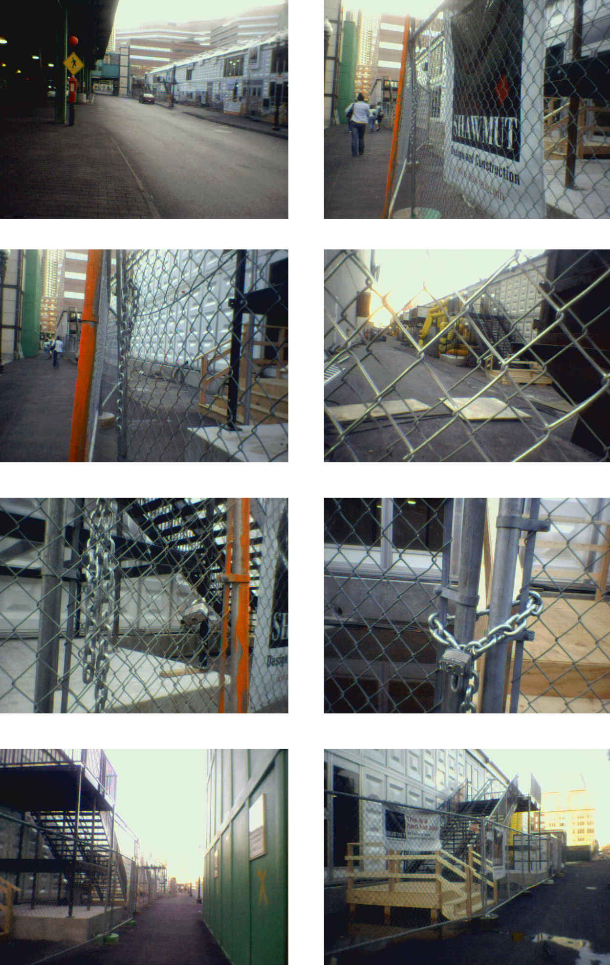 3. Unprotected Media Pavillion adjoining Fleet Center.In these first few images we see gates that are unlocked, and being that there is no security (or anybody else in the area) someone with nefarious intentions could easily enter the building and wreak all kinds of havoc, or leave something to provide a dramatic incident during the convention. Note the gate that is unlocked, and the chains just hanging there. Other construction areas are equally un-protected, and the security people are just, well... missing. Sadly, the local Walmart Store has better security that this. |