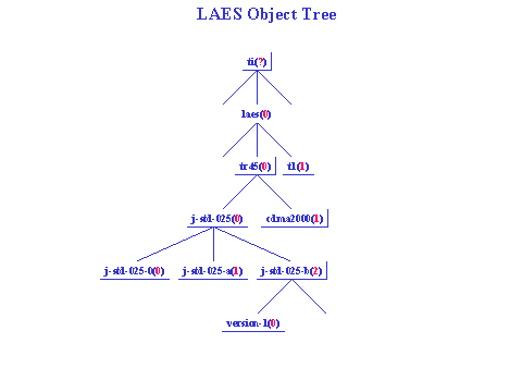 Contribution TR45.LAES/2003.03.11. 04 from T1S1 contains proposed text for PN-4465-RV1 including reference material for the T1S1 Surveillance specifications.  This text was Accepted as Modified.  The chair of T1S1 has submitted a request to T1 for the specific number which will be used for publication.  This number will be used in the references.  The chair took as assignment to verify with TIA that this conditional type of wording is acceptable for inclusion in a ballot document.  This contribution also contains ASN.1 material.  T1 is requesting a branch off of LAES, once the LAES module is established.  A diagram of the structure, as modified during the ad hoc meeting, will be proposed to TIA.  That diagram is shown at the bottom of this report.  This portion of the contribution was Accepted as Modified.