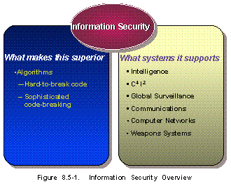 Overview (See Figure 8.5-1) This subsection covers Information Security technologies whose principal elements are cryptographic algorithms and cryptanalytic algorithms. These technologies are used by the US military forces, certain US Government (USG) departments and agencies, and authorized industrial users. Some special cryptographic systems are shared with US treaty allies.