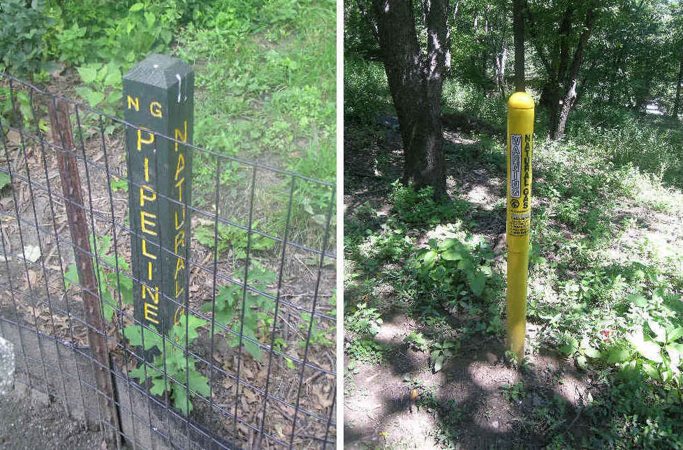 | Natural gas pipeline markers, required by law for public safety, were