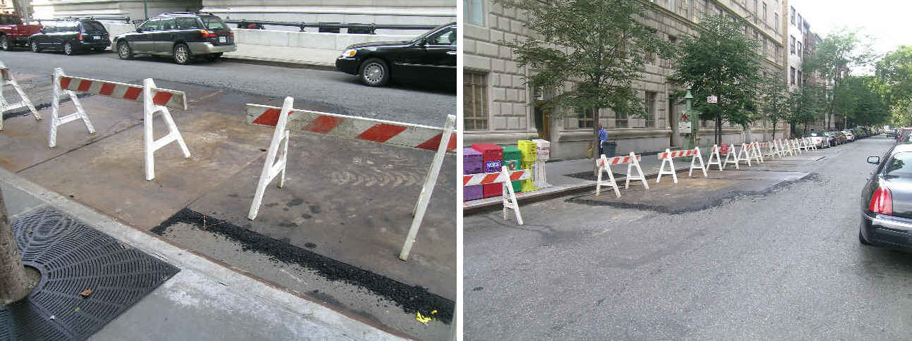 These photographs appear to show that a 26-inch diameter high-pressure natural gas pipeline serving from one-half to two-thirds of Manhattan, including electrical powers plants in Manhattan and Queens, is easily accessible under temporary covering at one location, perhaps at three, along West 75th Street, on the weekend before the reportedly heavily-secured Republican National Convention is to begin. Demonstrating the joke: it is easier to find something in the dark if you look only where the light is, in this case over-spotlighted icons.