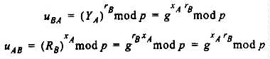 For electronic mail applications where the recipient does not participate in the formation of the key, the recipients contribution to the random exchange is replaced with the public key of the recipient. For the following, let A be the sender and B be the recipient of the E-mail message. We first begin with the formation of the E-mail message.