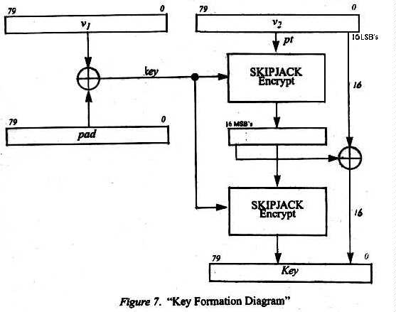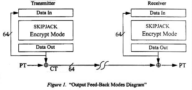 A. SKIPJACK Modes of OperationSKIPJACK is a 64 bit codebook utilizing an 80-bit cryptovariable. the modes of operation are a subset of the FIPS-81 description of modes of operation for DES [1]. These include: