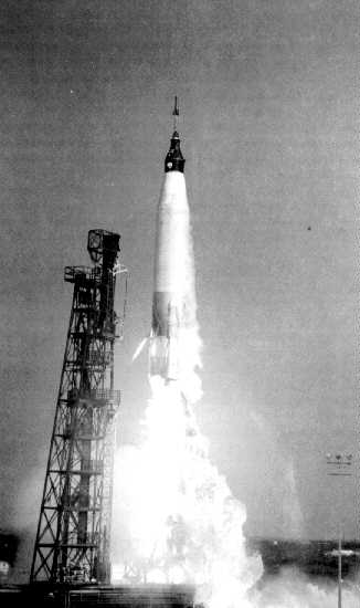 NASA's first major project, the Mercury Program, began as a result of the 1958 Space Task Group recommendations.55 Mercury, a stepping stone to the Moon mission later known as Apollo, was to send a man into low-Earth orbit and return him safely. Additionally, Mercury was to discover some of man's capabilities and limitations in space.56 In mid-1959, after the most extensive physiological and psychological testing ever performed on humans, NASA selected seven astronauts to take part in Mercury.57
