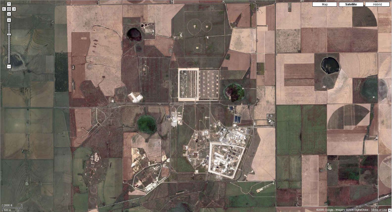 Compare AWE to the vast US WMD nuclear weapons complex, the Pantex warhead facility below (Google provides images of lesser resolution of the US facilties than those of the UK):