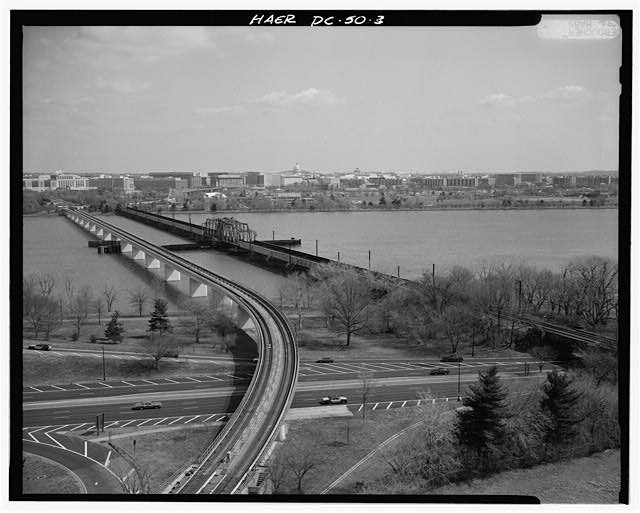 METRO (next left) AND LONG RAILROAD BRIDGES, AERIAL VIEW LOOKING NORTH HAER, DC,WASH, 585-4