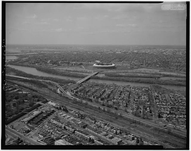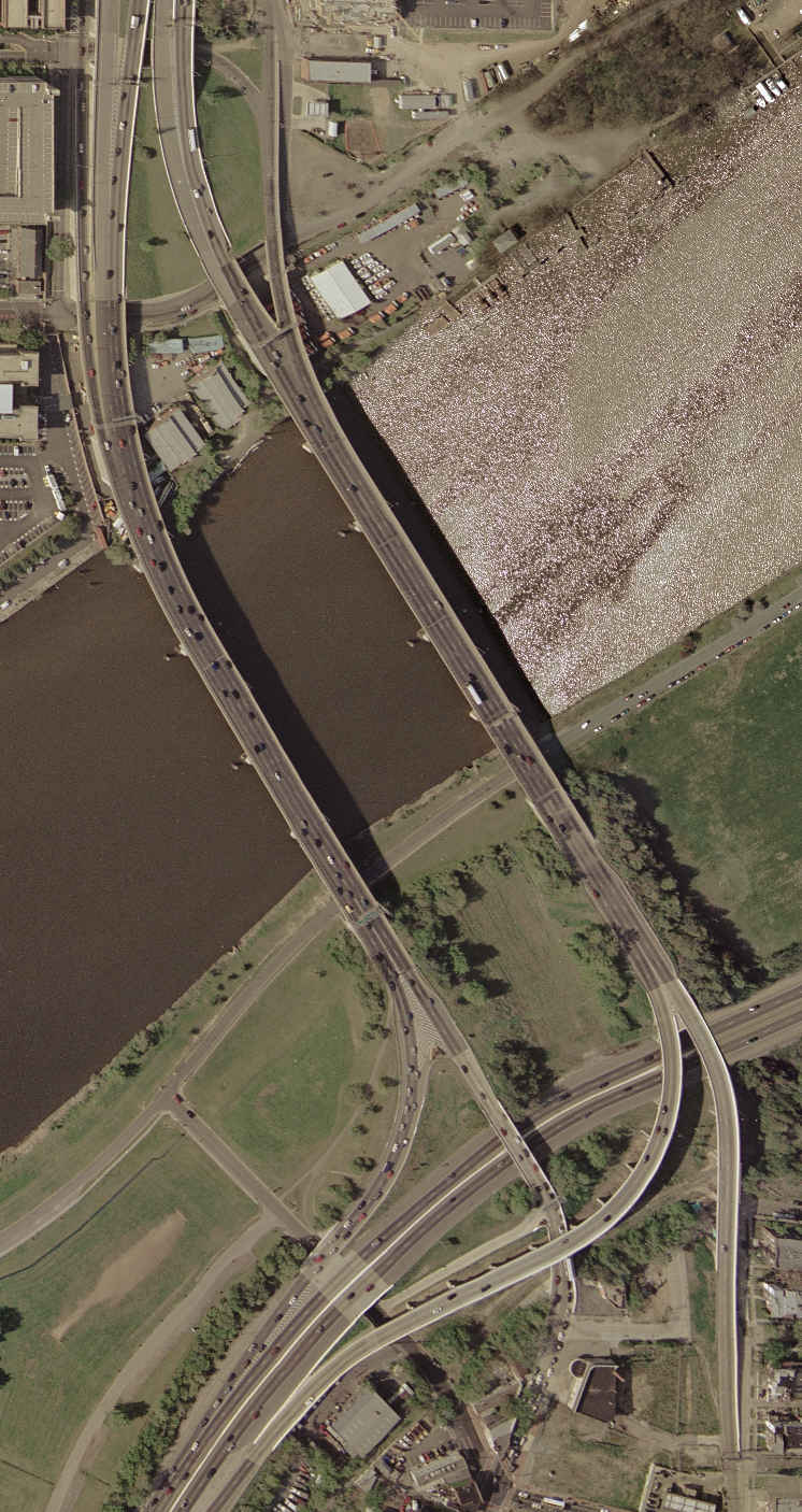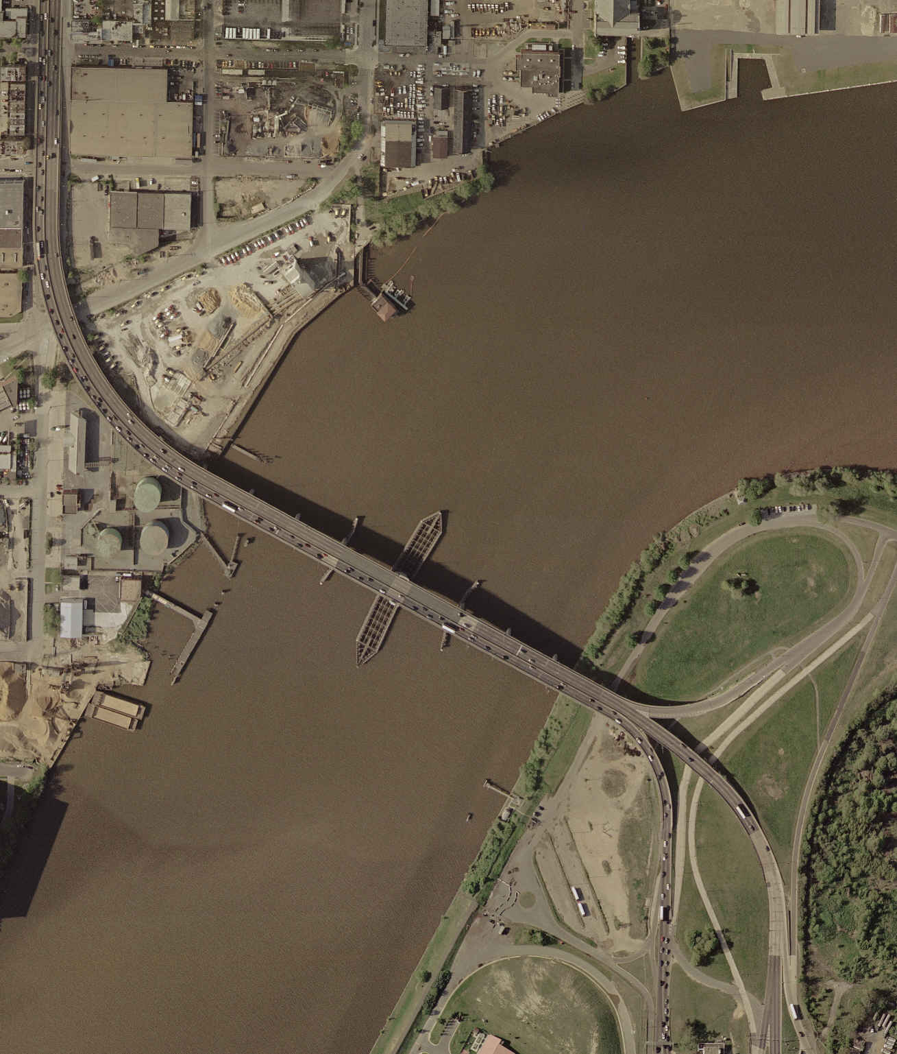 | METRO (at left) AND LONG RAILROAD (at right) BRIDGES AERIAL VIEW LOOKING