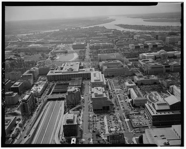 | AERIAL VIEW OF JUDICIARY SQUARE (RIGHT SIDE OF PHOTOGRAPH), LOOKING