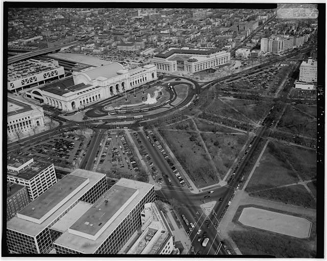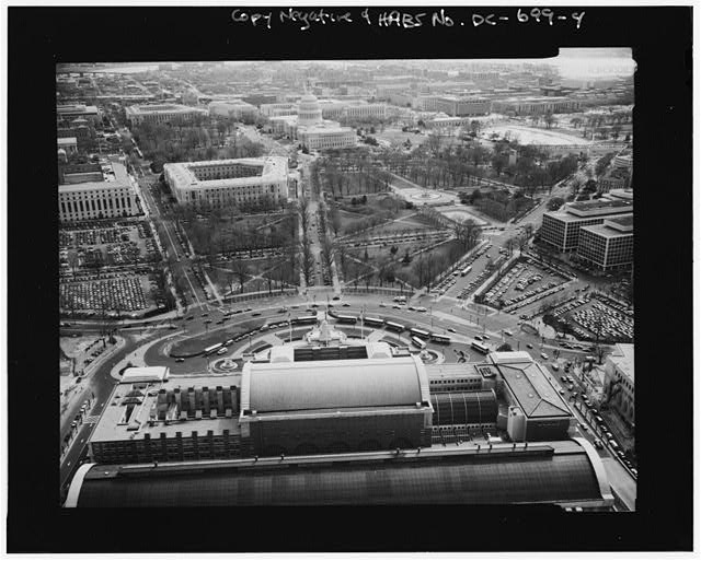 AERIAL VIEW OF STATION AND PLAZA; LOOKING NORTHEAST HABS, DC,WASH,641-1