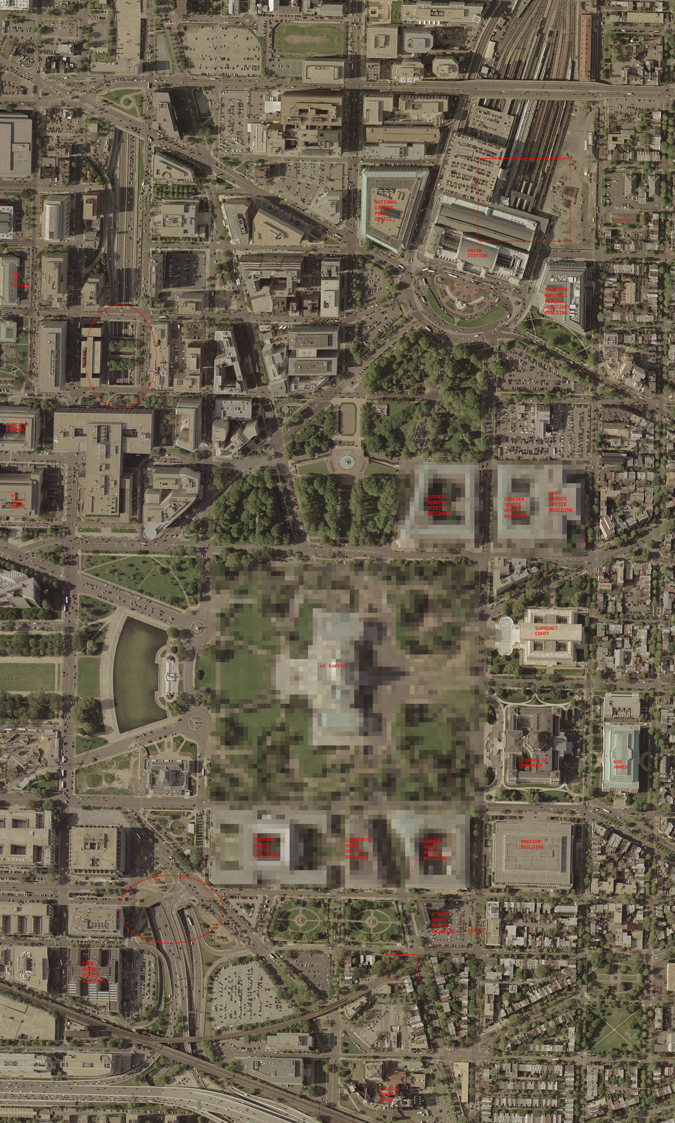 AERIAL VIEW ALONG AXIS OF NEW JERSEY AVENUE, SE, LOOKING NORTHWEST