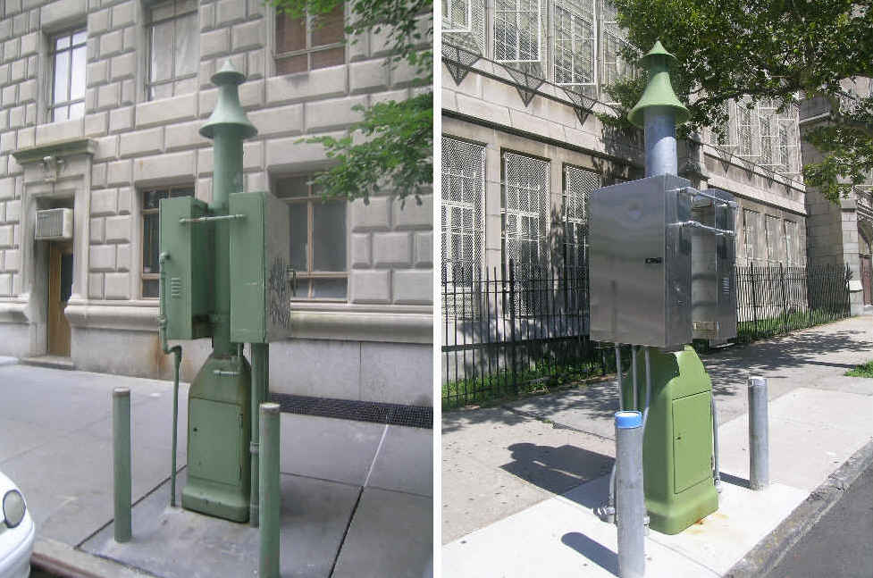 Con Ed pipeline pressure regulators/vents, West 75th Street, left, West 135th Street, right, August 22, 2004.