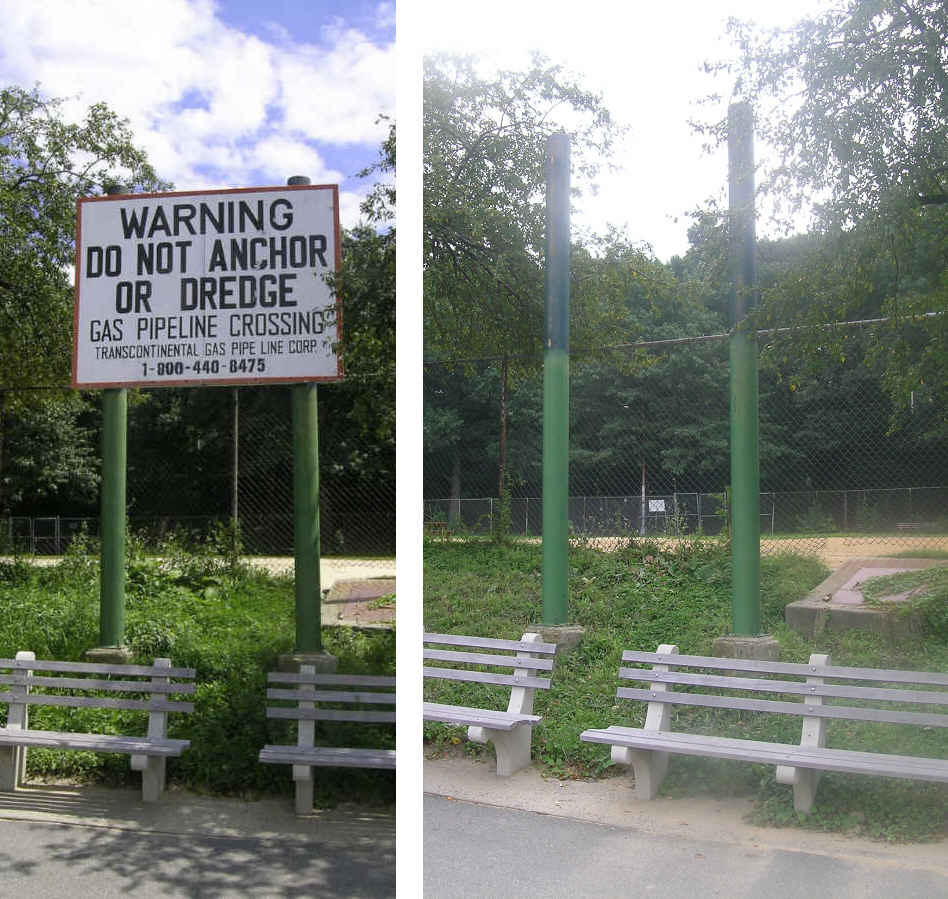 Cryptome published on August 7 a photo of mariner's warning sign by Transcontinental Gas Pipe Line Corporation (Transco) on the Manhattan bank of the Hudson River near West 75th Street. On August 16 Cryptome reported the sign was still there. Cryptome found on August 21 that the sign had been removed.