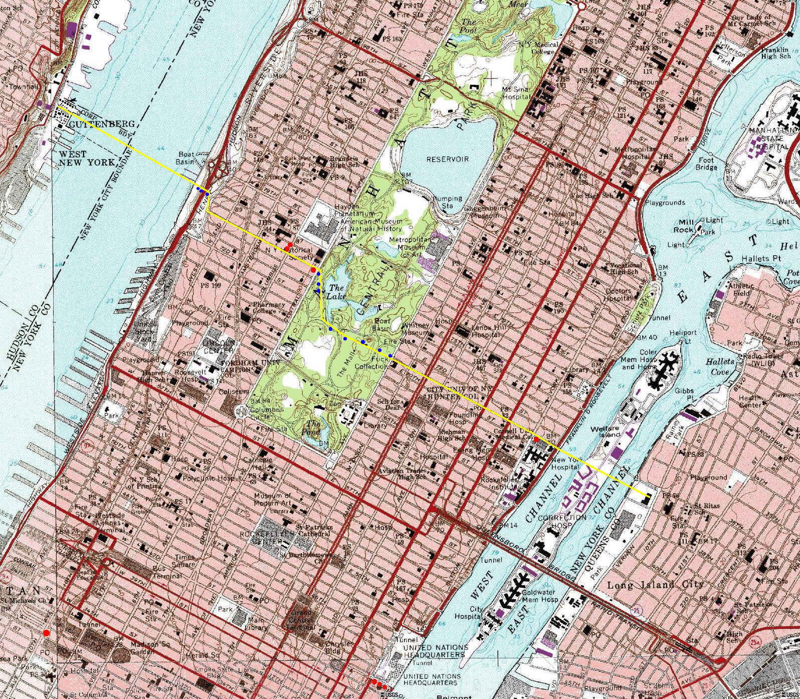 (1) the Amtrak railroad tunnel, (2) over the IRT subway at Broadway, (3) over the 8th Avenue subway at Central Park