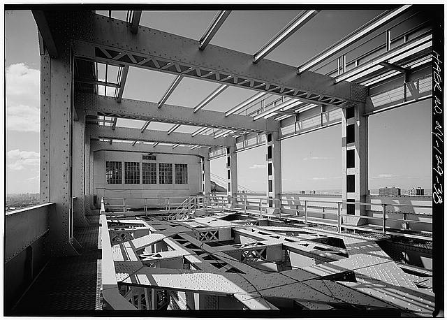 34. Aerial view looking down at top of Brooklyn Tower, Jet Lowe, photographer, 1982.