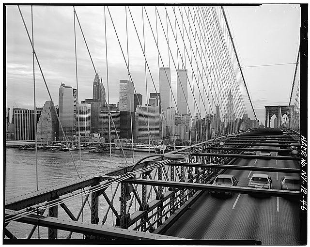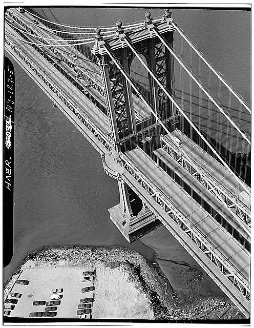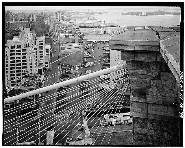 46. View looking NW towards lower Manhattan showing suspension system and superstructure. Jet Lowe, photographer, 1982.