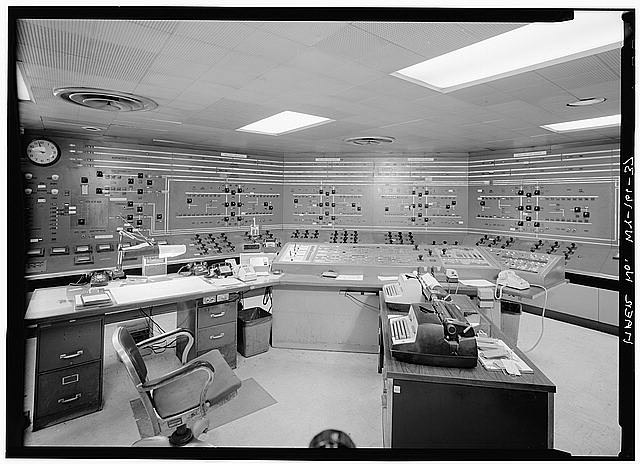 37. HEADQUARTERS AND MAINTENANCE BUILDING, DETAIL SHOWING MAIN CONTROL ROOM PANELS