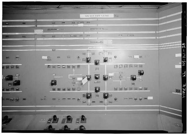 38. HEADQUARTERS AND MAINTENANCE BUILDING, CLOSE-UP OF CONTROL ROOM PANELS FOR NEW YORK (SIDE) RIVER BUILDING