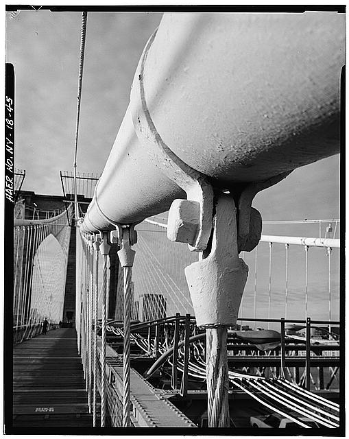 45. Detail view of connection between suspender and main cable. Jet Lowe, photographer, 1982.