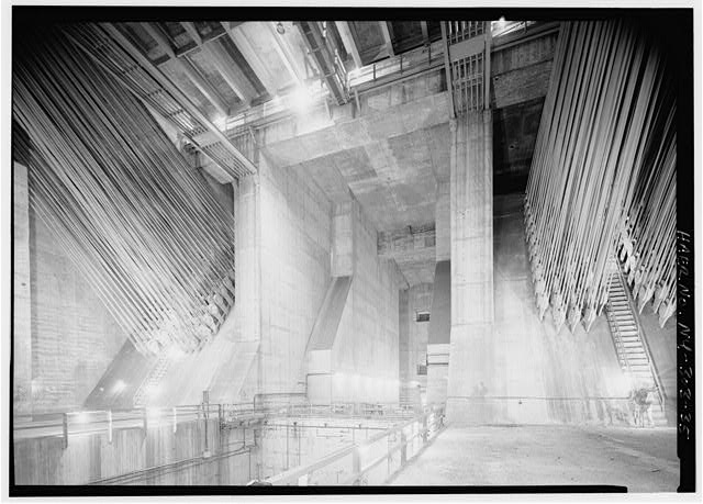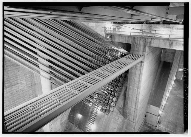 65. Detail view inside Manhattan anchorage of splayed cable strands. Jet Lowe, photographer, 1982.