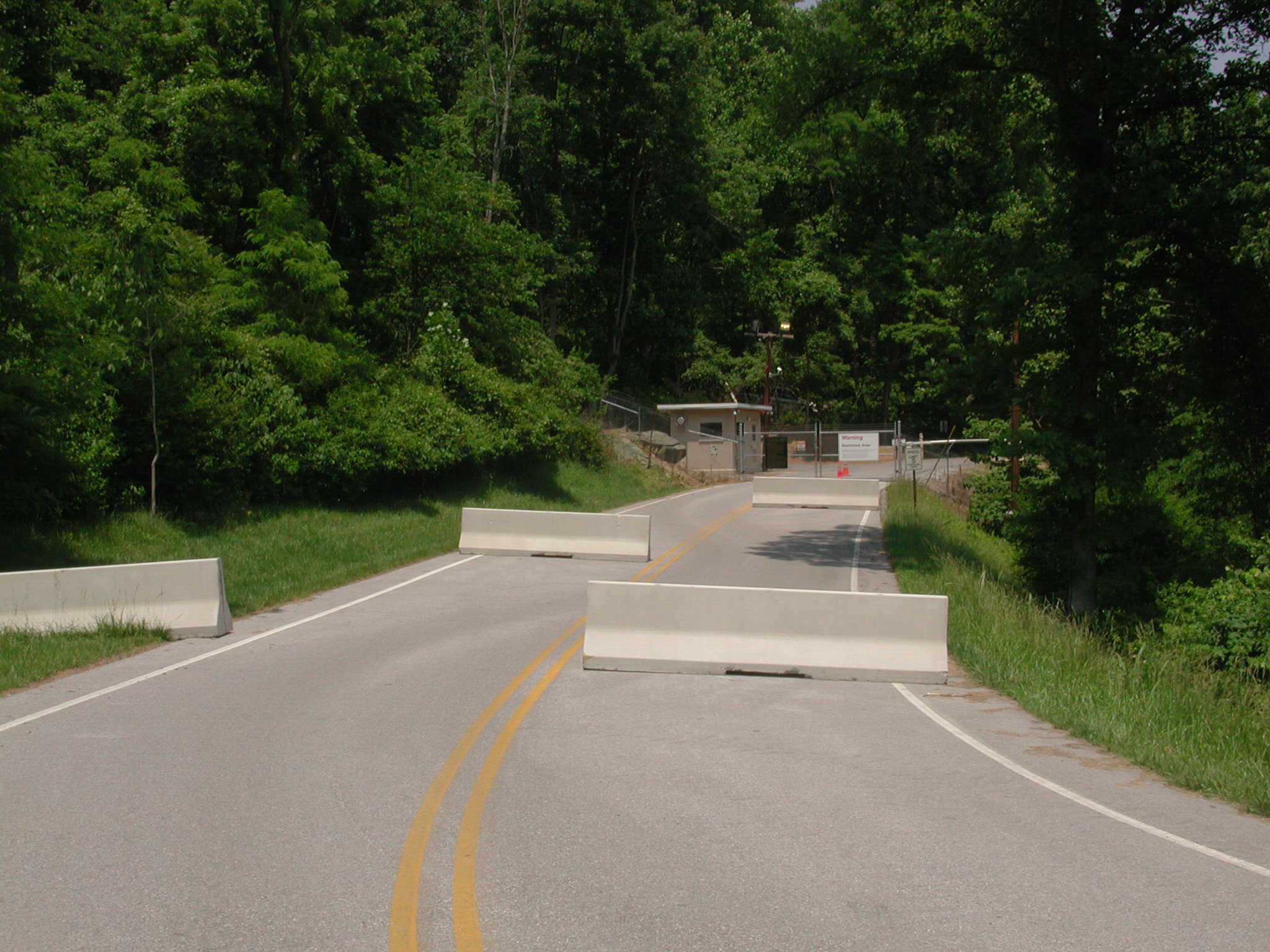 barriers in the road which required vehicles to serpentine for passage, similar to those shown at rear entrances below.