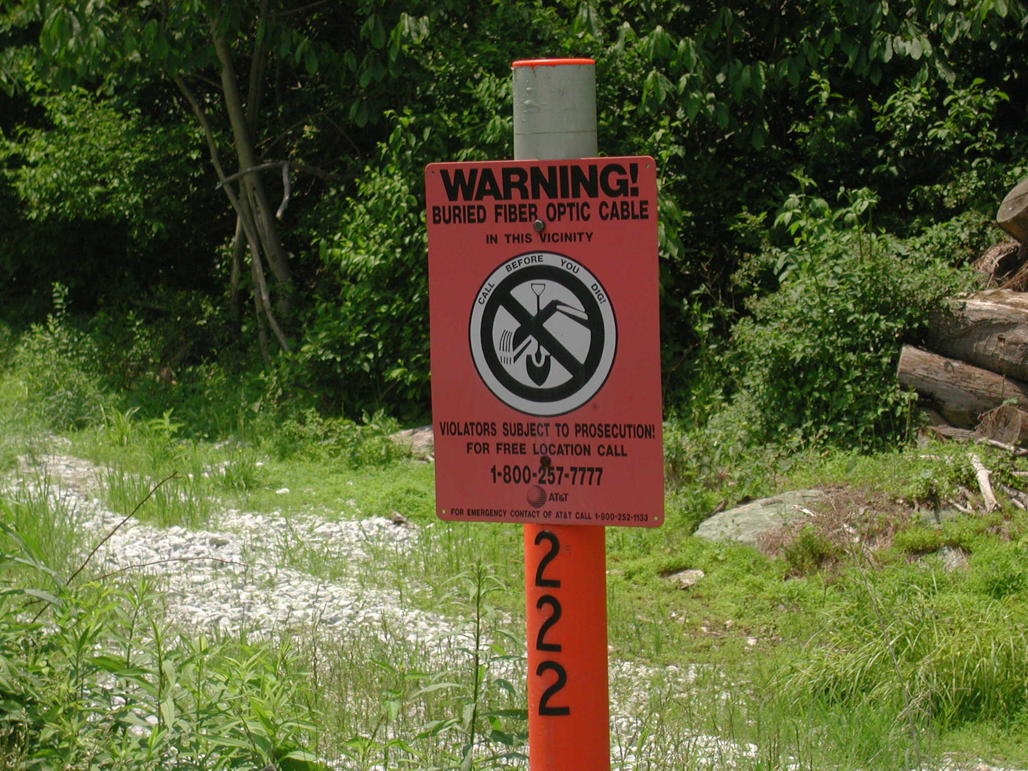 Camp David is located about 6 miles from Site R. There is surely a communications link between the two, and perhaps an underground tunnel for communications systems, servicing the systems and personnel. The link might be way of Ft Ritchie which supports Site R. Here is a map showing the three installations. To the right is what appears to be a fiber optic cable linking Site R to Thurmont, MD. There's a warning sign for the cable near a rear gate of Site R at the top of the red line (see photo below).