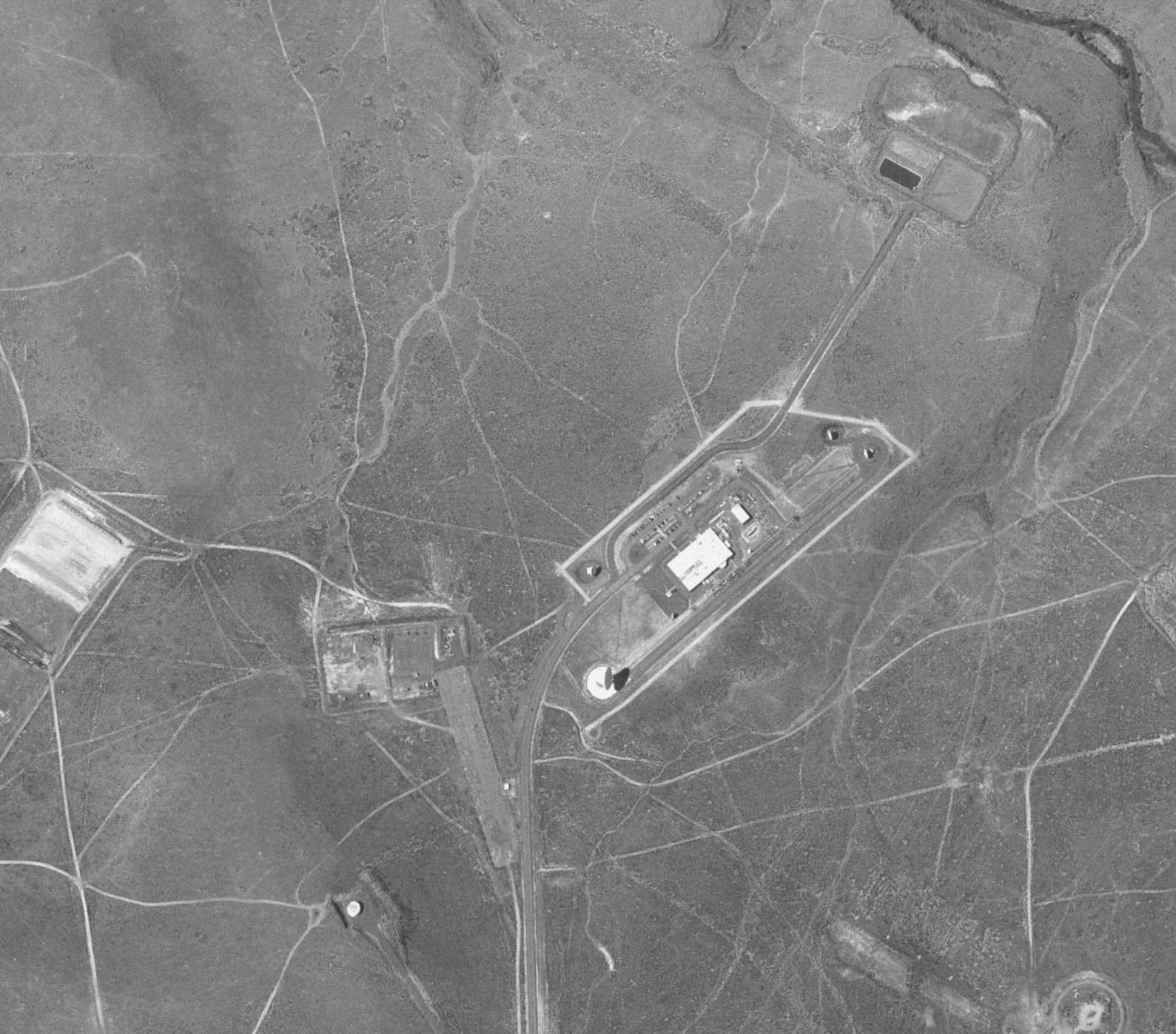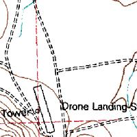 A July 1953 topographical map shows a "drone landing strip"