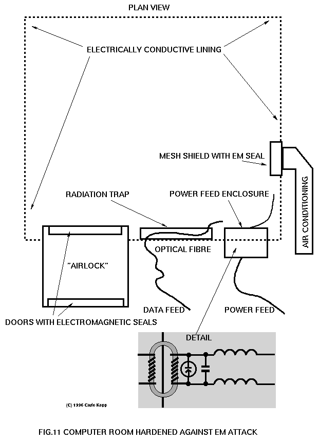 5 A noteworthy technical issue in this context is that even equipment not-rated to TEMPEST standards will radiate energy at very low power levels, in comparison with intentional transmissions by radar or communications equipment. A receiver designed to detect, identify and locate sources of UE radiation will either need to be highly sensitive, or deployed very close to the emitter. It is worth noting that UE from computer monitors and networks exhibit known regular patterns, and correlation techniques could be used to significantly improve receiver sensitivity [DIXON84].