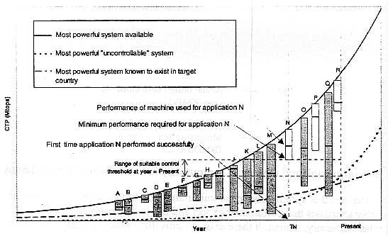 The third premise requires that systems above the minimum performance level of a particular application have characteristics that permit their export and use to be closely monitored, controlled, and when necessary, denied. If there exist systems that cannot be controlled whose performance exceeds the minimum necessary to carry out the application, then the U.S. government will be unable to control that application solely by t~ing to deny the necessary computer power.