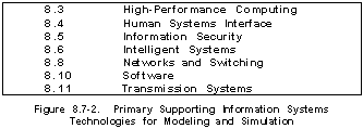 Overview (See Figure 8.7-1) Advanced simulation and modeling encompasses a wide range of dual-use applications, ranging from engineering design and manufacturing process optimization to dynamic flight trainers and simulators to distributed, interactive simulations of entire engagements and battles. The key elements of this technology involve digital processing to manipulate the data, human system interfaces through which the users interact with the data, and the knowledge embedded in the software discussed in related subsections of this MCTL (see Figure 8.7-2 for cross-reference). The modeling and simulation technologies are particularly important in the context of engineering problems and manufacturing processes, where critical know-how is specific to applications not addressed here.