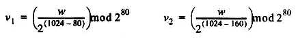 v1 = w1023 . . . w944 and v2 = w943 . . . w864